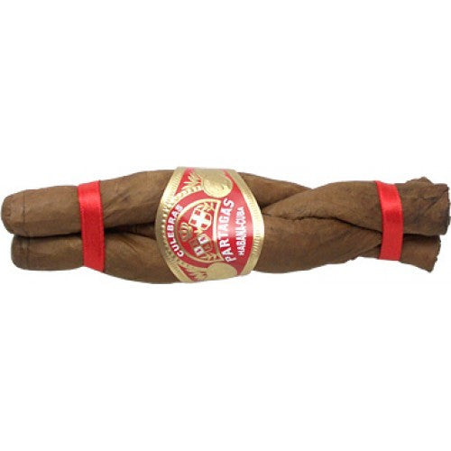 A Partagas Culebras cigar is actually a bundle of three individual cigars twisted together to form a braided or intertwined shape, resembling the appearance of snakes. The three cigars are connected at their heads and feet, and they are typically secured with a ribbon or string. This distinctive presentation adds a touch of novelty and visual appeal to the cigar.